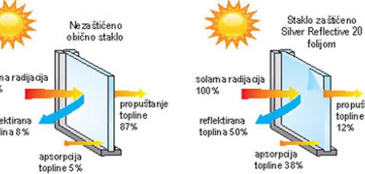 Folija za prozore,stop-sol,protiv sunca i UV zracenja,koja leti smanjuje temperaturu u prostoru i do 14C,a pritom cuva privatnost sa spoljne strane “ogledalo efektom”,dok se spoljna okolina sa unutrašnje strane normalno vidi.
