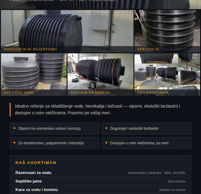 Rezervoare za vodu i septičke jame (horizontalne i vertikalne): Od 500l do 50.000l.